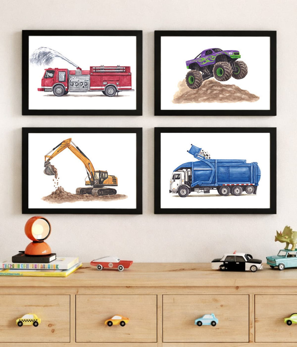 Painted by hand and thoughtfully reproduced, the Humongous Trucks illustrations are transformed into framed prints with consistent quality, ready to hang and easy to style.