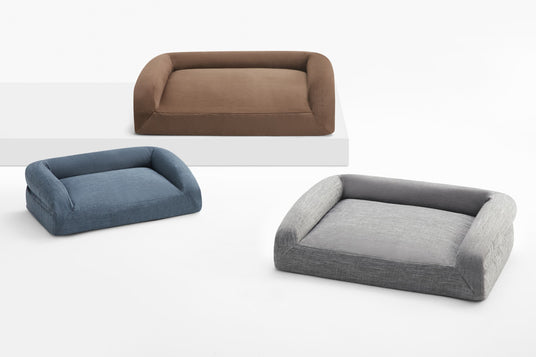 Choose from two fabric styles: Durable or Cozy. Durable is our high-denier Oxford weave, repelling pet hair and dirt for easy clean up. Cozy is a plush faux mink that feels softer and calming for dogs who love to curl up. Both styles include a removable zippered cover that is machine washable and available in three sizes.