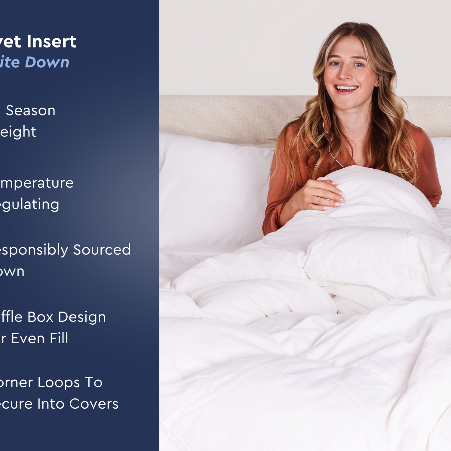 Filled with 100% white down clusters at 550 fill power, this insert delivers airy softness and natural loft that feels plush every night.