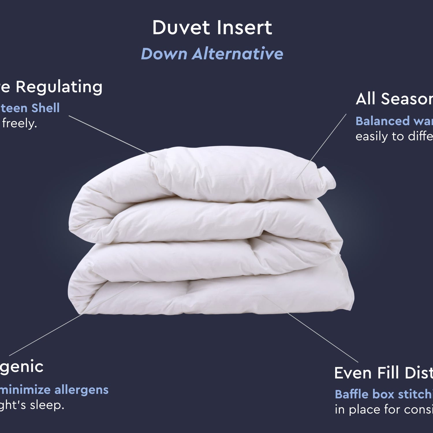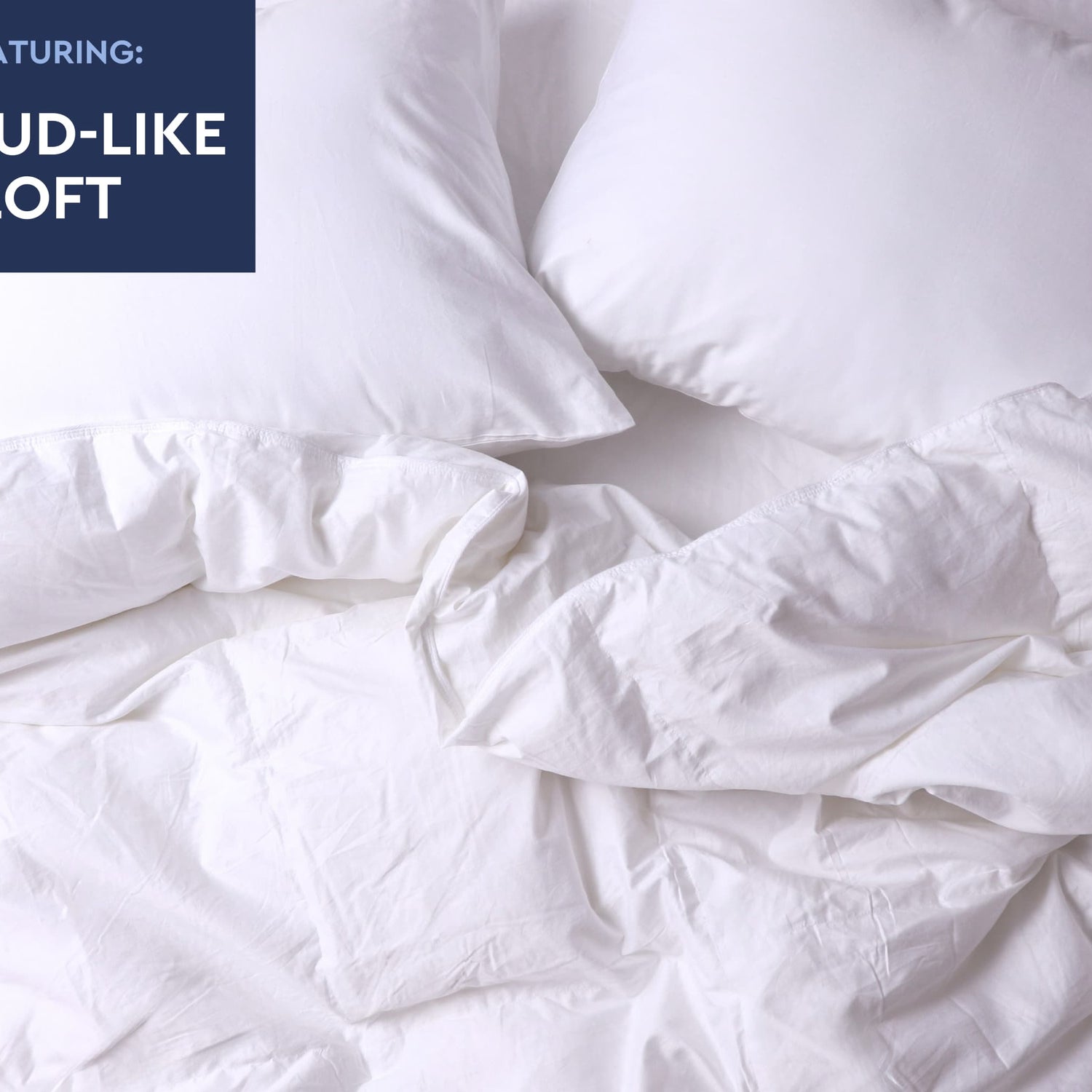 This premium duvet insert is filled with lofty white down clusters that deliver natural loft and breathable warmth for a cloud-like sleep experience.
