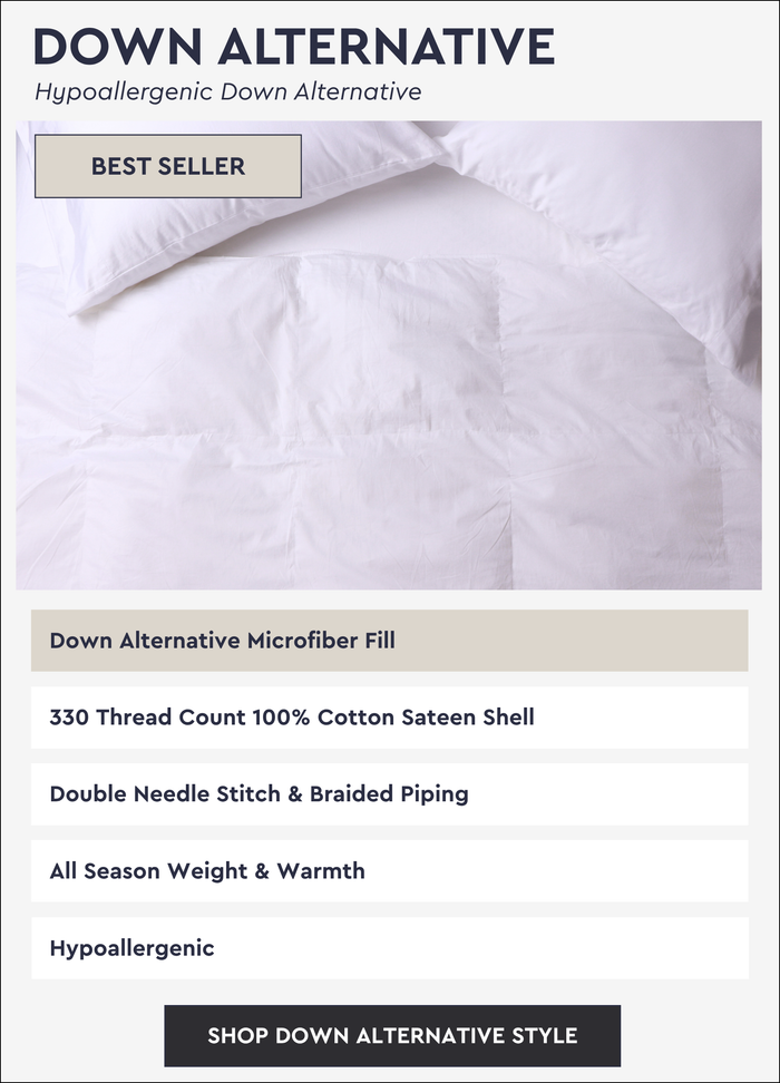 Available in all-season for year-round comfort or winter for extra insulation when the temperature drops.