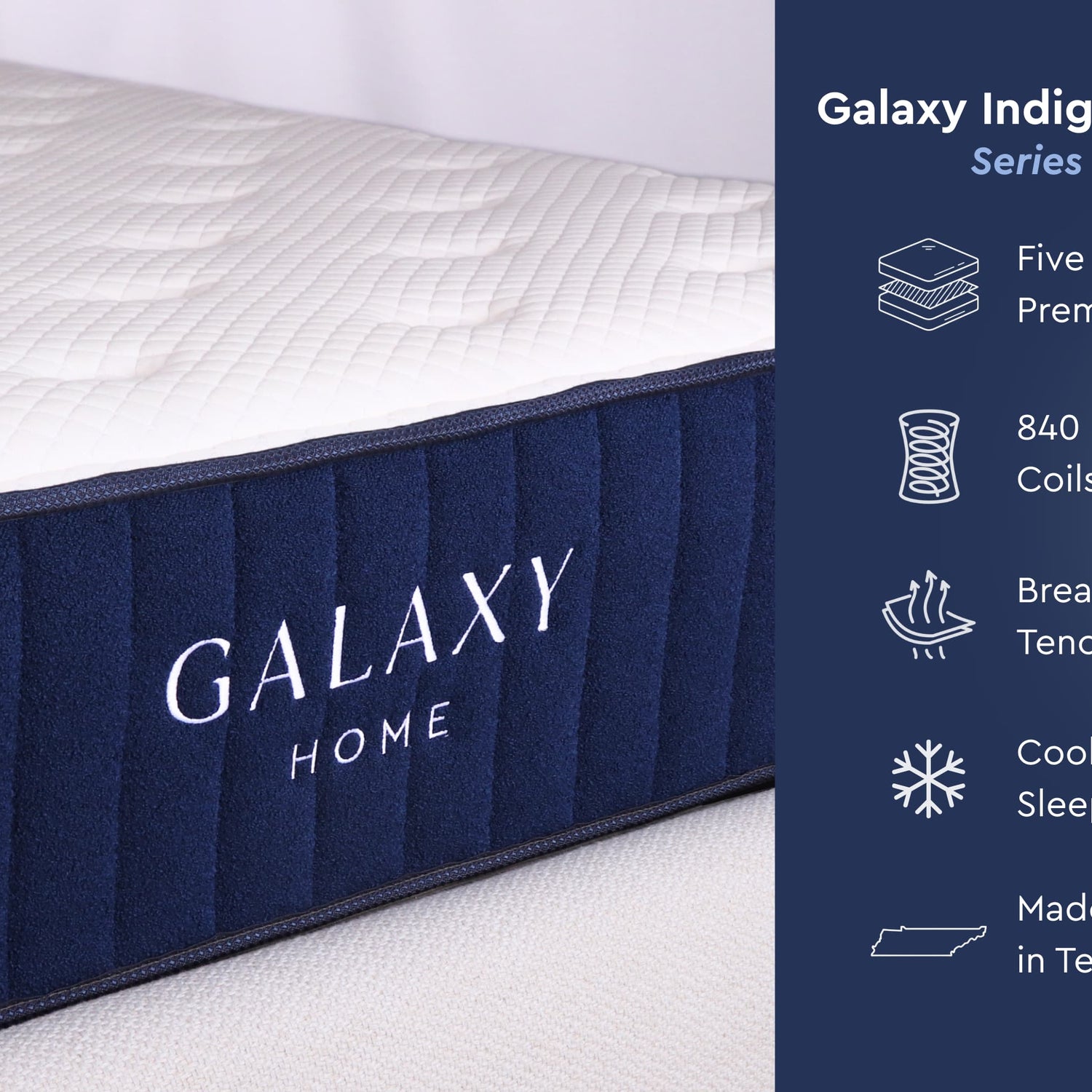 Galaxy Indigo mattresses are designed and produced in Tennessee by specialists with over 50 years of experience perfecting sleep.