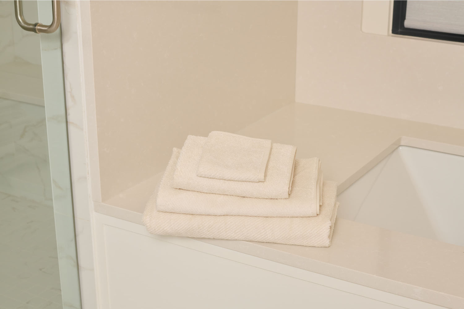 Crafted from 100% organic cotton, these bath towels deliver strong absorbency and a soft feel, all woven into a refined twill pattern. Durable yet elevated, they bring a subtle sense of luxury to your everyday routine.