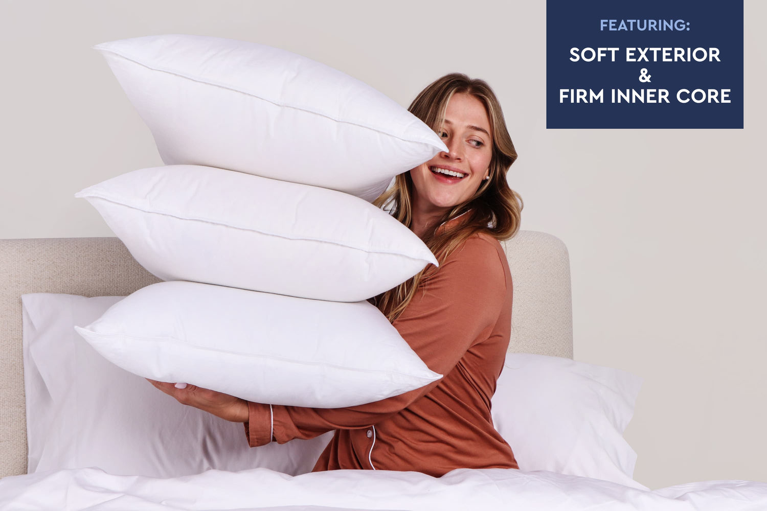 Soft down clusters cradle your head as the pillow gently compresses. It conforms to your contours and helps muscles relax so you can settle into stillness with ease.