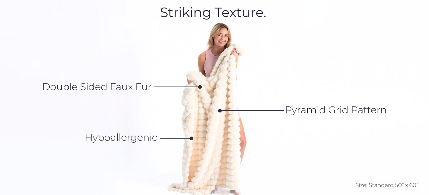 The Pyramid Grid Throw Blanket is striking. Faux fur fibers form contours of coziness across your figure with an impressive contemporary aesthetic.